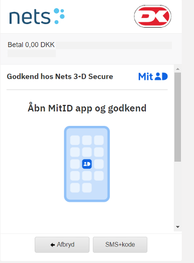 OBS!! Når du bekræfter med Mit-ID, vises beløb 0,00 kr.